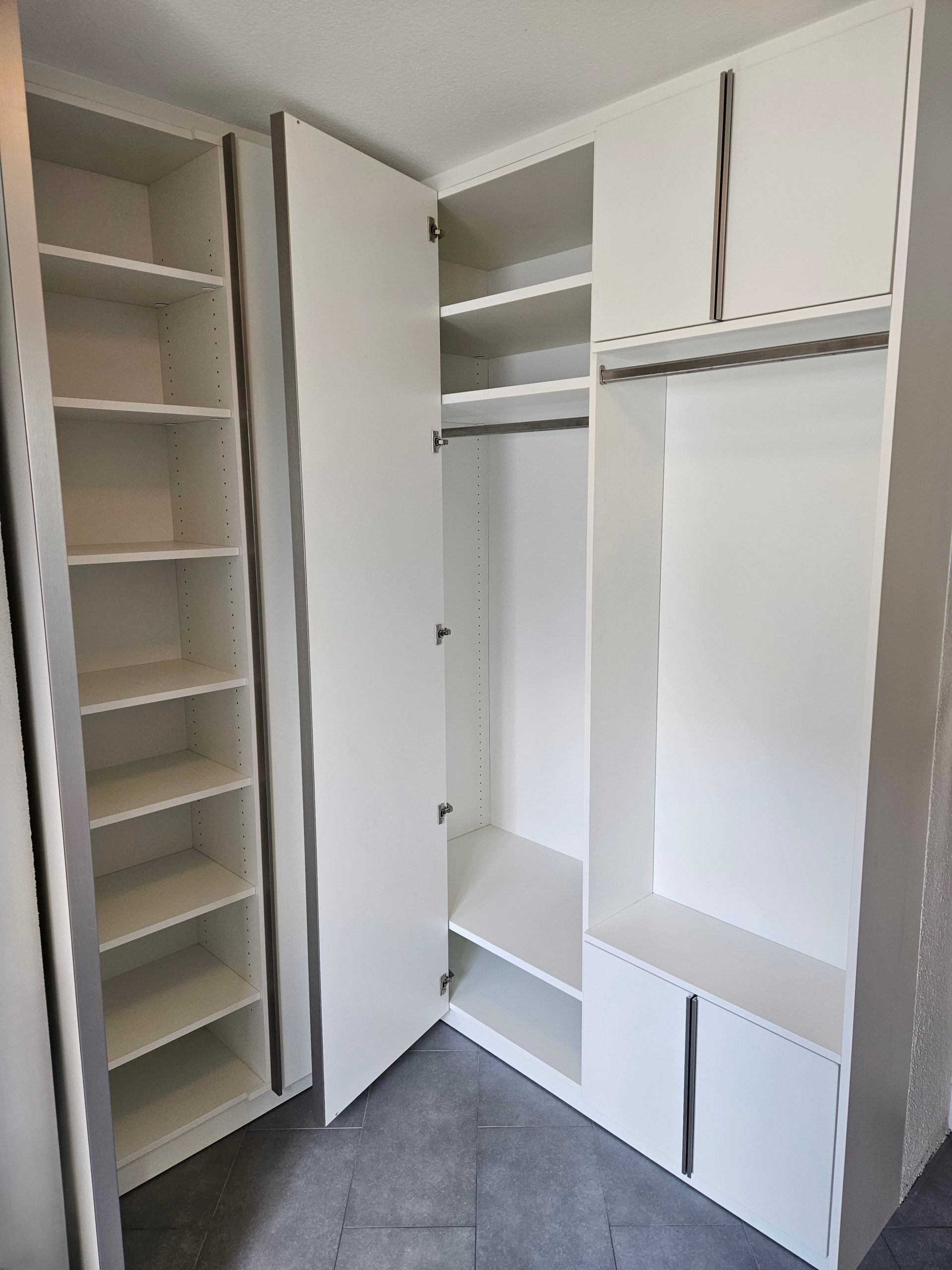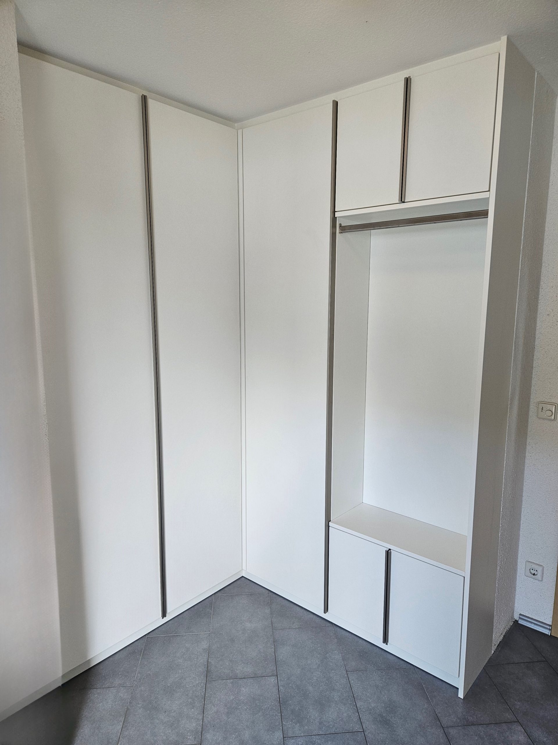 Dieses Projekt zeigt, wie eine maßgefertigte Garderobe in Weiß nicht nur für Ordnung sorgt, sondern auch stilvolle Akzente setzt – ideal für moderne Wohnkonzepte.