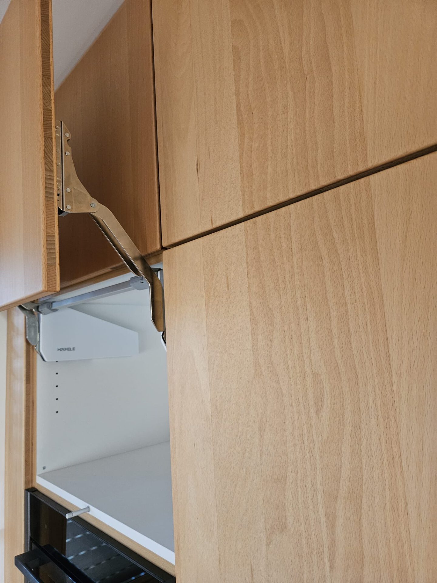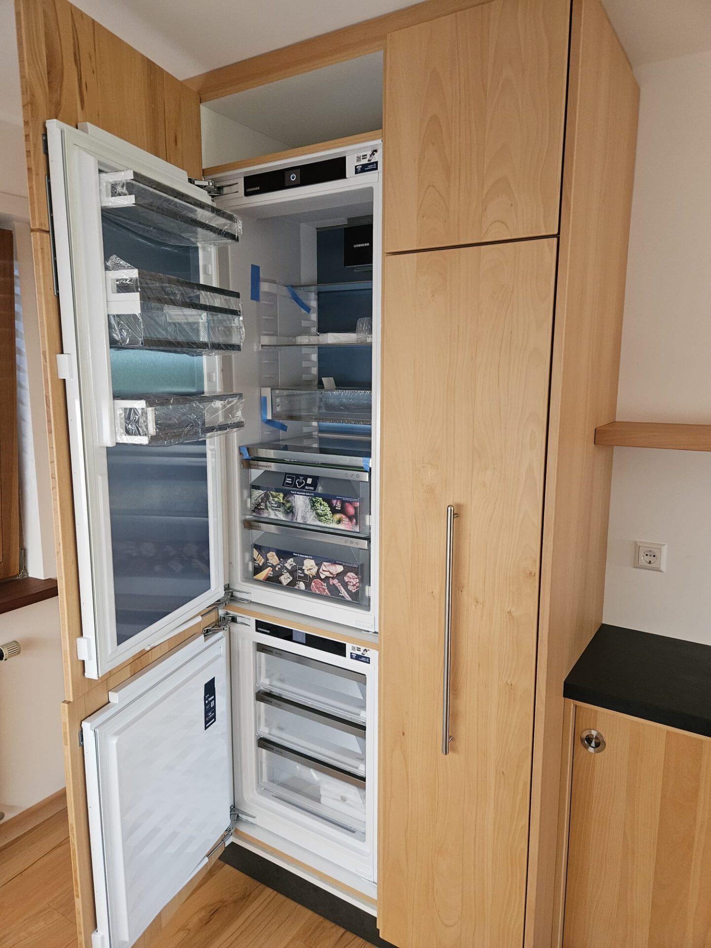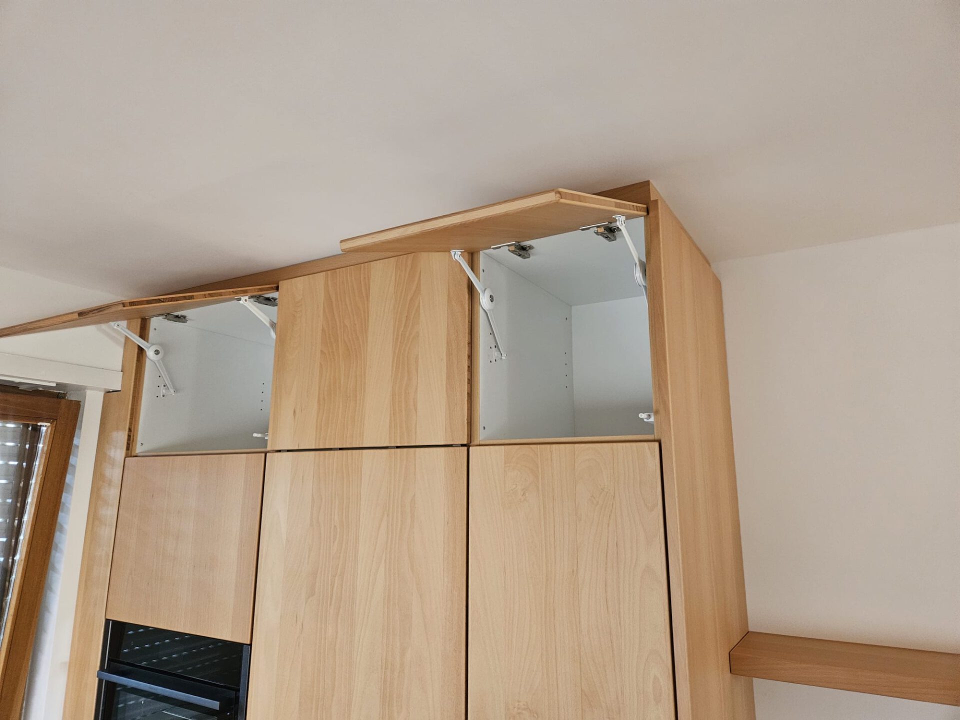 Küche mit massiver Buchenfront – zeitlos, langlebig und funktional, mit viel Stauraum und modern integrierter Technik.