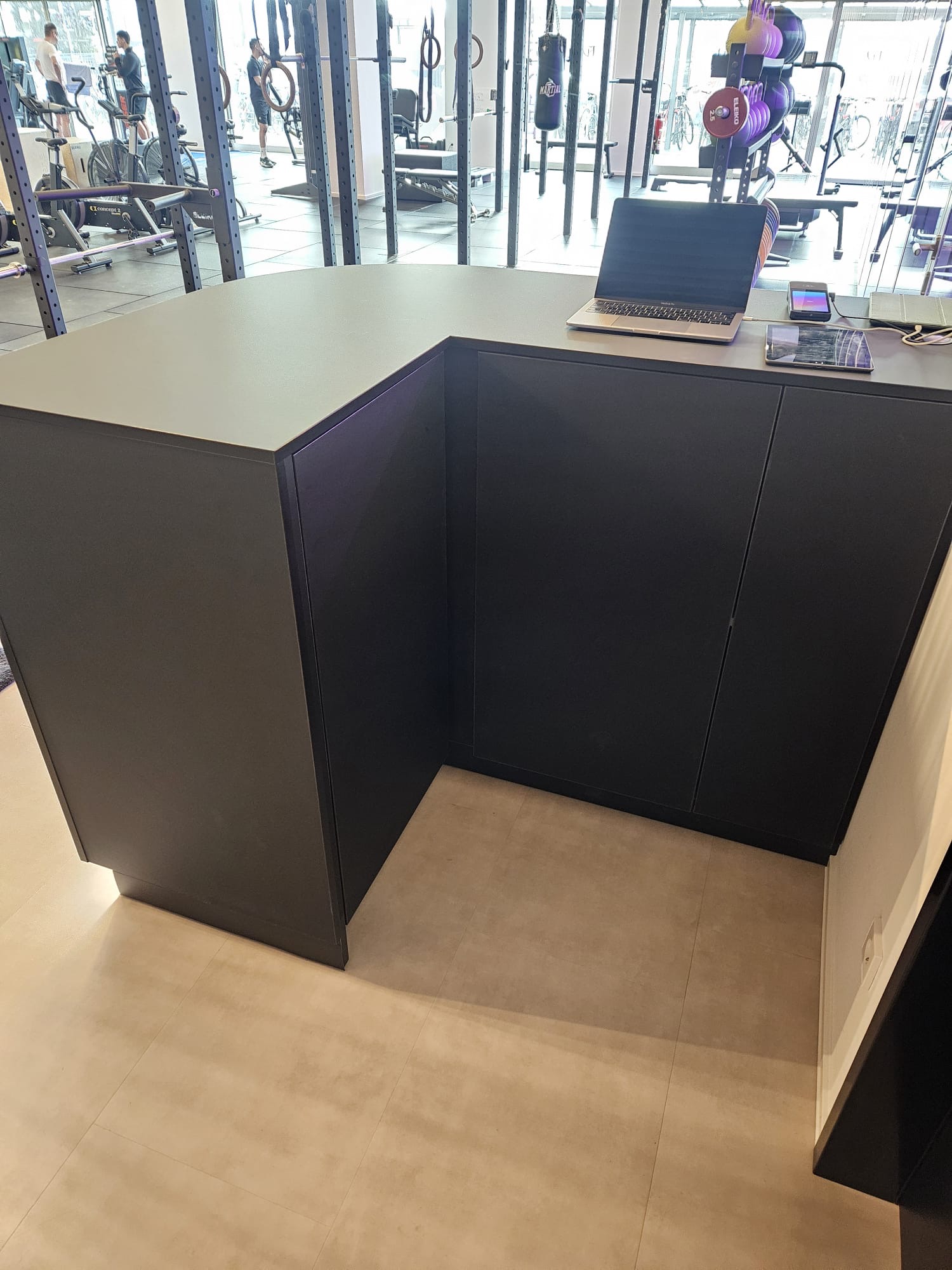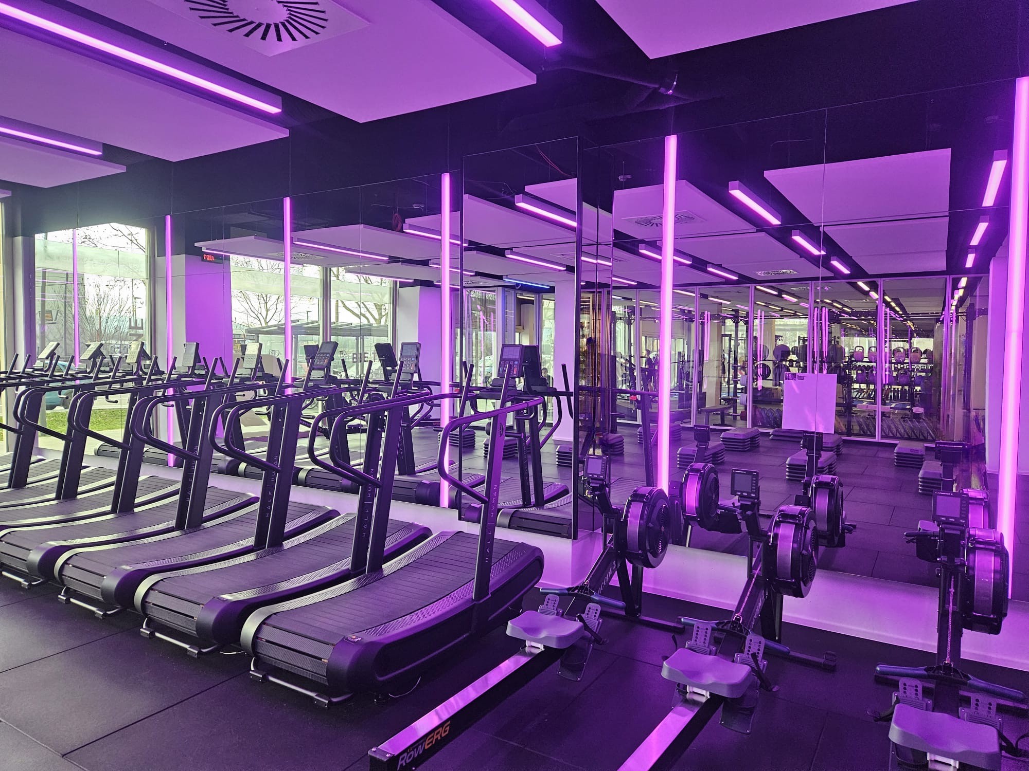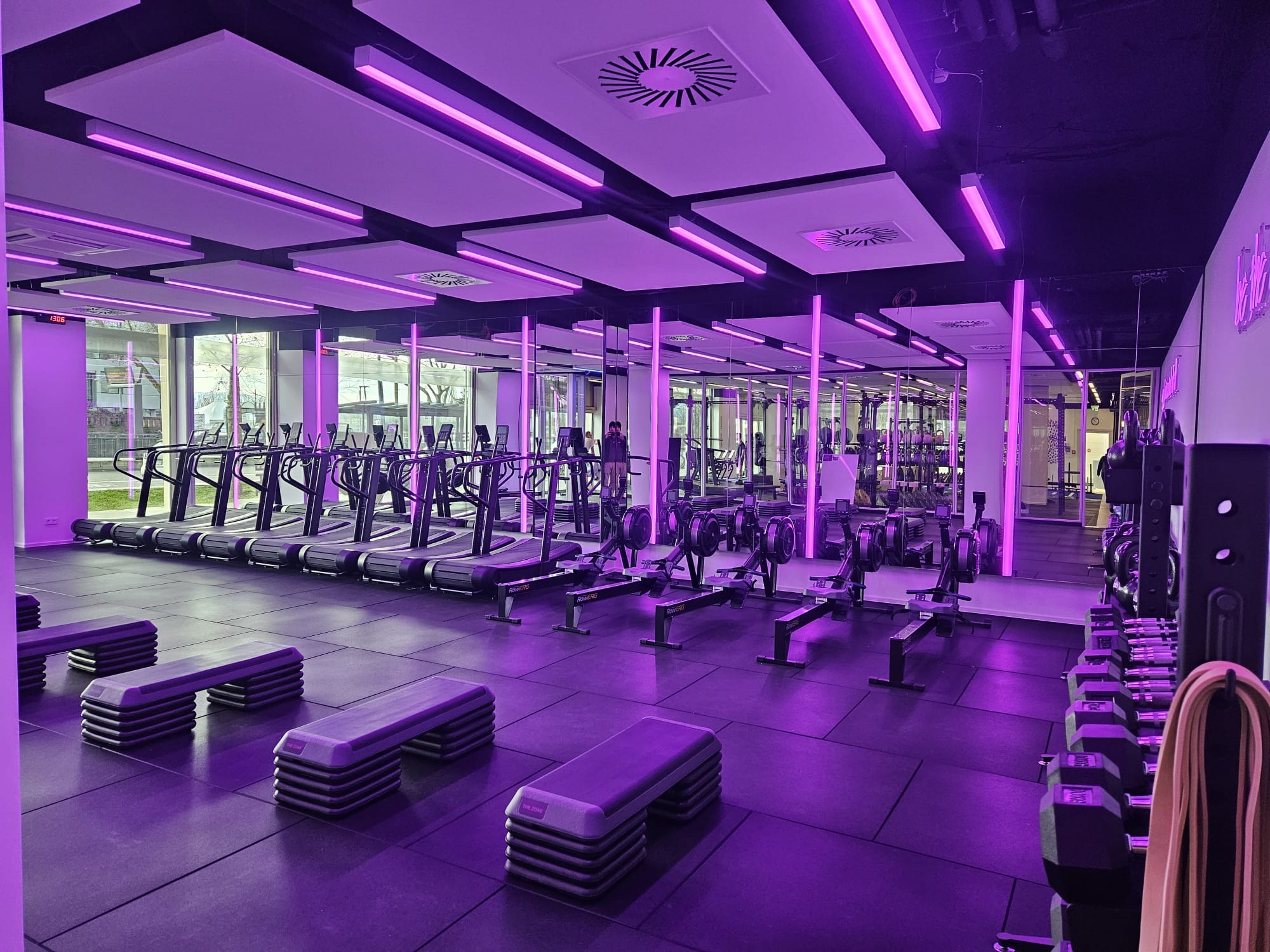 Im Trainingsraum wurden großflächige Spiegelwände montiert, die aus mehreren Spiegelelementen bestehen. Diese lassen den Raum optisch größer wirken und bieten ideale Voraussetzungen, um Bewegungen und Übungen perfekt zu kontrollieren.
